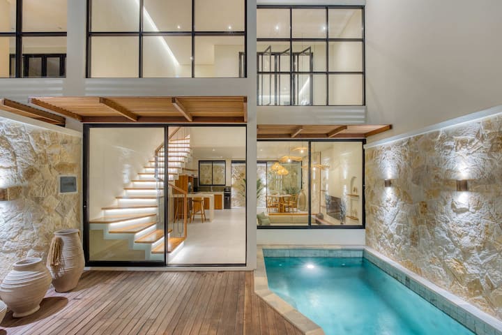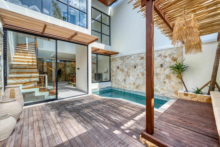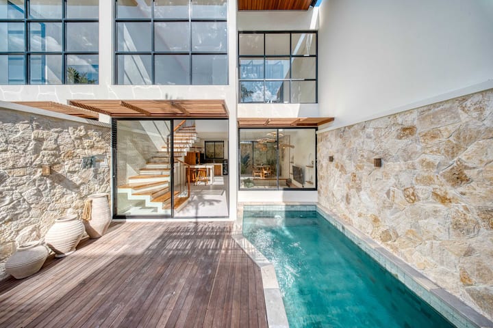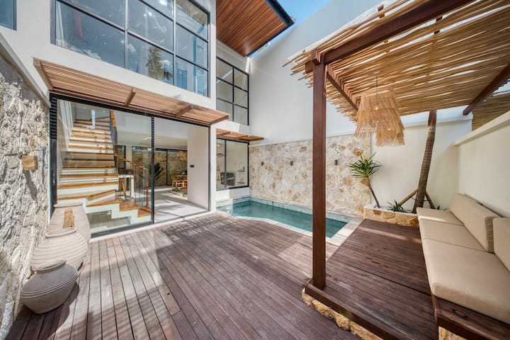 📍 Okolie a poloha: táto vila sa nachádza v srdci Uluwatu a je obklopená úžasnými plážami, rušnými kaviarňami a ikonickými pamiatkami. Len za 3 minúty sa dostanete na skrytú pláž Pantai Thomas a za 5 minút na pláž Padang Padang, jedno z najznámejších miest na Bali pre surferov. Pri západe slnka sa pripojte k ruchu v legendárnom bare Single Fin na vrchole útesu alebo sa ponorte do balijskej kultúry s ohňovým tancom Kecak v chráme Uluwatu (Pura Luhur Uluwatu). Nočný život nájdete v Hatch Uluwatu a športové aktivity v Padel Island Uluwatu. Dobrodružstvo je doslova za rohom! 🌅🌊