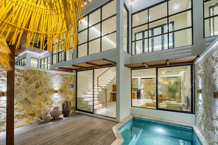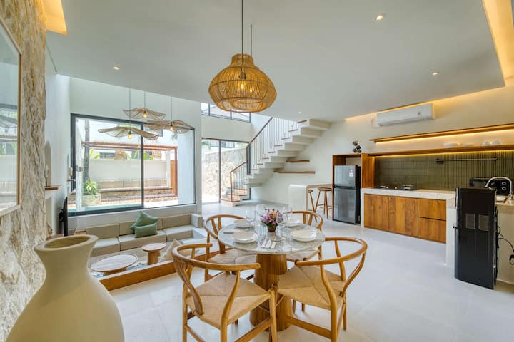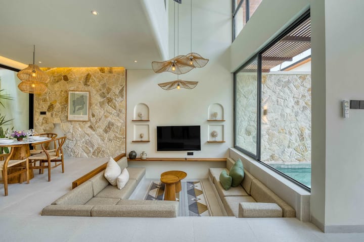 📍 Okolie a poloha: táto vila sa nachádza v srdci Uluwatu a je obklopená úžasnými plážami, rušnými kaviarňami a ikonickými pamiatkami. Len za 3 minúty sa dostanete na skrytú pláž Pantai Thomas a za 5 minút na pláž Padang Padang, jedno z najznámejších miest na Bali pre surferov. Pri západe slnka sa pripojte k ruchu v legendárnom bare Single Fin na vrchole útesu alebo sa ponorte do balijskej kultúry s ohňovým tancom Kecak v chráme Uluwatu (Pura Luhur Uluwatu). Nočný život nájdete v Hatch Uluwatu a športové aktivity v Padel Island Uluwatu. Dobrodružstvo je doslova za rohom! 🌅🌊