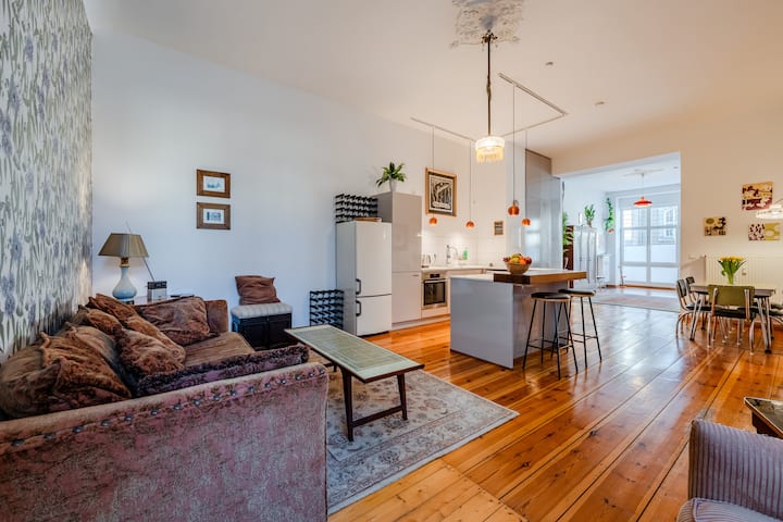 Zažite čaro starého Západného Berlína v našom priestrannom a štýlovo zariadenom apartmáne na ulici Cauerstraße 4 v berlínskej štvrti Charlottenburg. Apartmán je len pár minút od námestia Ernst-Reuter-Platz – uprostred rušného centra medzi Technickou univerzitou (TU Berlín), ulicami Kantstraße, Kurfürstendamm a námestím Savignyplatz. Ideálne pre rodiny, páry alebo obchodných cestujúcich, ktorí ocenia pohodlie, štýl a centrálnu polohu.