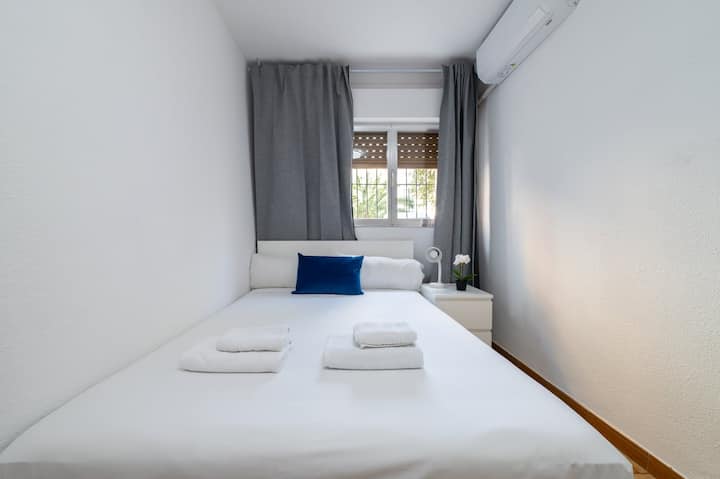 Apartmán na prízemí s 3 spálňami, ideálny pre rodiny alebo skupiny. Nachádza sa v Usera, neďaleko Plaza Elíptica a metra Usera, v okolí sú supermarkety, obchody, parky a možnosti voľnočasových aktivít. Pešia vzdialenosť od rieky Manzanares a s ľahkým spojením verejnou dopravou do centra Madridu.