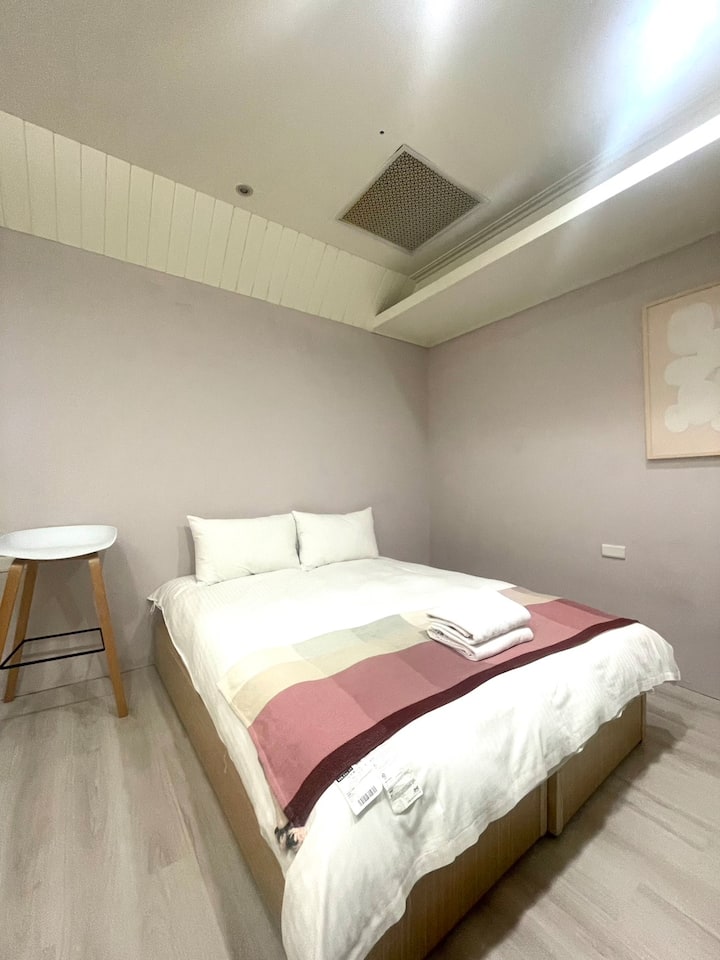 [有窗] Dvojlôžková izba s manželskou posteľou|06R3 | Blízko MRT Ximen