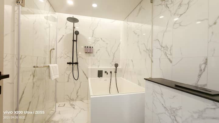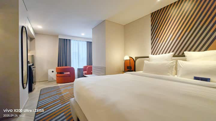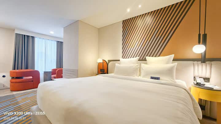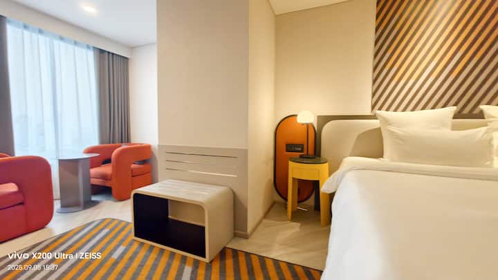Jednolôžková izba B4 v centre mesta/blízko metra/výhľad na mesto z výšky/obchodná štvrť Siam/bezplatné vyzdvihnutie/z vonkajší bazén/fitnes/bar na streche/preprava na letisko a z letiska na štyri noci 21D