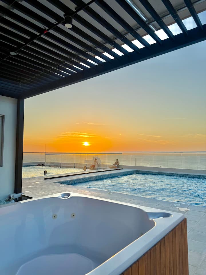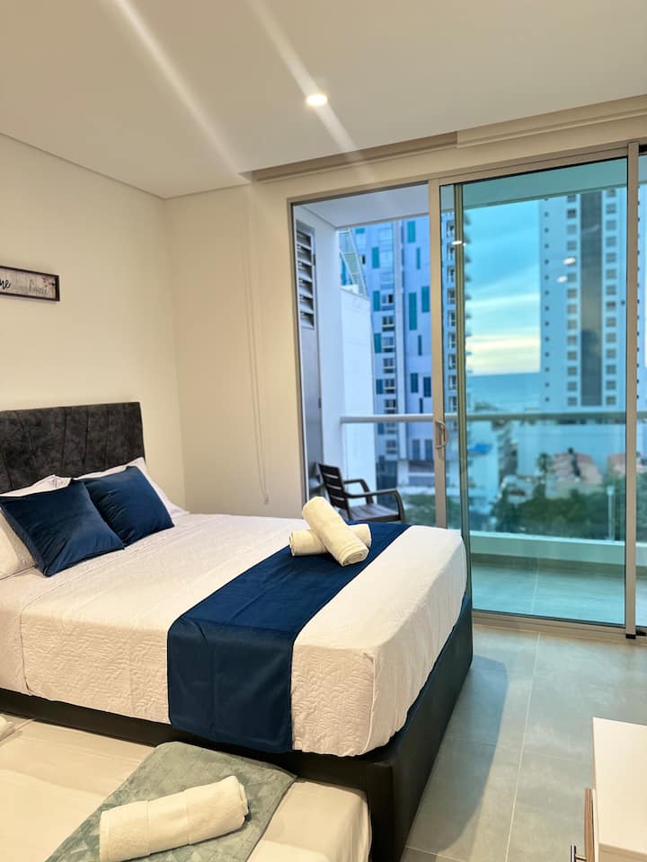 Veľkolepý apartmán v blízkosti pláže 200 metrov od Playa Salguero, Rodadero Sur s 2 bazénmi, 4 vírivkami , 2 turcos, 2 sauny, telocvičňa, detský park, obchod, BillE Games, ping pong, Mesa, coworking s Wi-Fi klimatizáciou, príďte si užiť dovolenku alebo služobné cesty a zažite nádherný zážitok v tomto skvelom pohodlí a zábavnom ubytovaní.