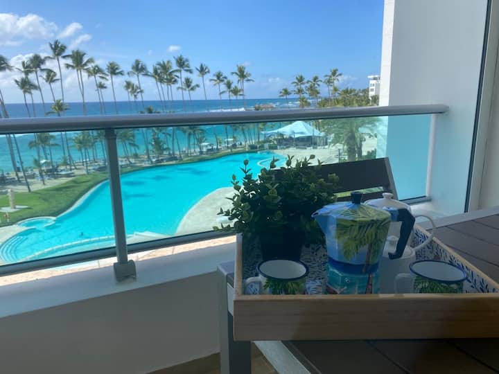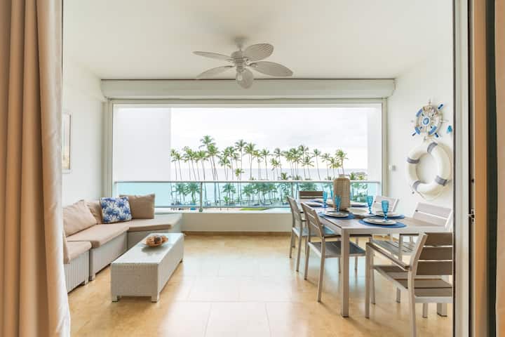 Vitajte vo svojej základni priamo na pláži v Juan Dolio – svetlej, priestrannej a bez námahy relaxačnej.