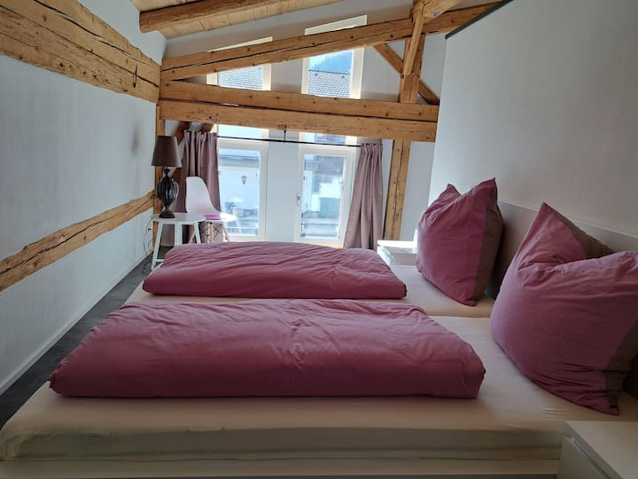 Keď nám v roku 2014 ponúkli historický dom Mussldomah, bola to láska na prvý pohľad. S radosťou a hrdosťou vám ponúkame apartmány Himmelblau a Sonnengelb vytvorené v zadnej časti budovy. V roku 2018 bol pridaný susedný dom Hennala, ktorý sme tiež zrekonštruovali s veľkou láskou. Teraz vám tam môžeme ponúknuť aj štyri apartmány: „Rosarot“, „Apfelgrün“, „Stajňa“ a „Loft“.