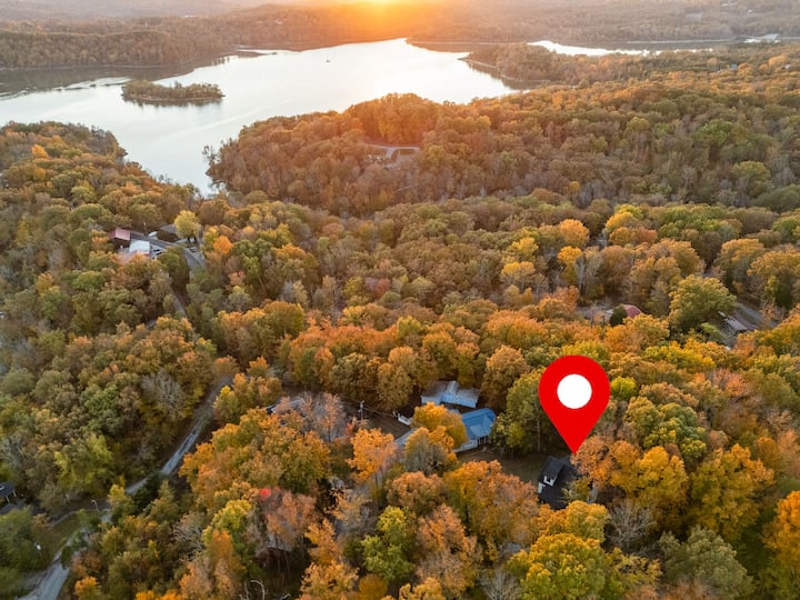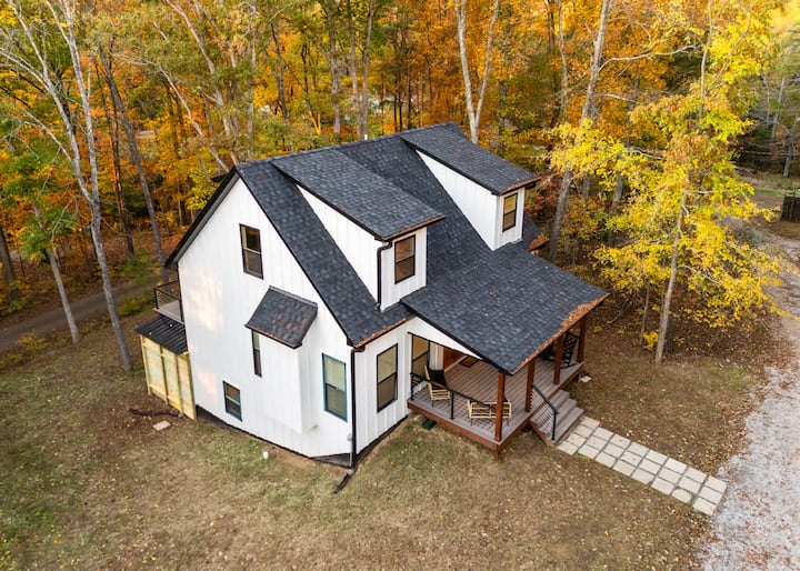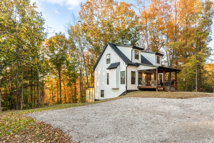 Toto trojpodlažné útočisko, ktoré sa nachádza na jazere Nolin len 40 minút od Mamutovej jaskyne, spája pokoj pri jazere s moderným komfortom – ponúka súkromnú vírivku, herňu, nabíjačku pre elektrické vozidlá a priestor pre 10 osôb. Navrhnuté pre spojenie a relaxáciu s ohniskami, terasami s výhľadom na jazero a premyslenými detailmi. Rezervujte si pobyt a užite si bezproblémový päťhviezdičkový pobyt pri jazere.