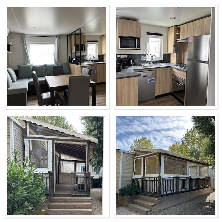 Mobilný dom Bora Bora s plným komfortom s rozlohou 40 m² sa nachádza v 4★ kempingu La Carabasse vo Vias Plage, 800 m od mora.