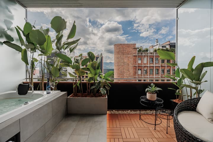 Dvojpodlažný loft El Poblado • Luxusná a súkromná vírivka