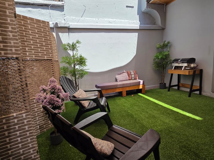 Veľké izby a nádvorie len pár krokov od metra