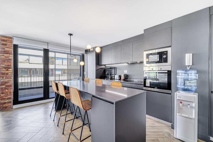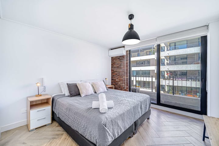 Moderný apartmán s 2 spálňami, bazénom a posilňovňou blízko Costanera