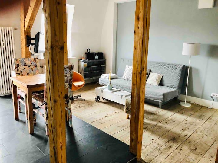 Uprostred Freiburgu v blízkosti hlavnej stanice, univerzity, divadla, koncertnej sály, pešej zóny atď. Autentický a individuálny život v štvrti Freiburg v cene! Útulné podkrovie s rozlohou približne 50 metrov štvorcových (4. poschodie, veľa schodov!), 2 spálne, 1 obývacia izba. UPOZORNENIE!: netradičná (čajová)kuchyňa (komplikovaná umývačka riadu/kempingová misa). Balkón s výhľadom. Stará budova! Knruing floorboards - ideálne pre 2 3 - osoby. Nefajčiari! Oddeľovanie odpadkov! Žiadna práčka. Žiadne večierky!! Žiadna prostitúcia!!