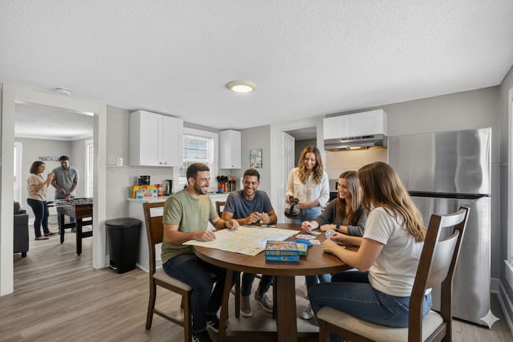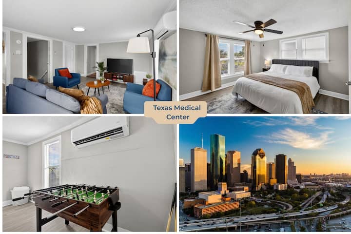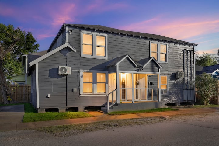Vitajte v ubytovaní Modern City Haven – elegantnom ubytovaní s 2 spálňami v novo zrekonštruovanom trojpodlažnom apartmáne v srdci východnej časti centra Houstonu! Toto štýlové ubytovanie je ideálne pre 6 hostí a je vzdialené len 7 minút od Texas Medical Center a 8 minút od centra mesta. Vychutnajte si vysokorýchlostné Wi-Fi, Smart TV, pracovný priestor, plne vybavenú kuchyňu, práčku v ubytovaní a bezplatné parkovanie. Preskúmajte reštaurácie v štvrti East Downtown, Buffalo Bayou Park (10 minút), University of Houston (6 minút) a Museum District (9 minút). Zažite pohodlie, komfort a jednoduchý prístup k najlepším atrakciám v Houstone.