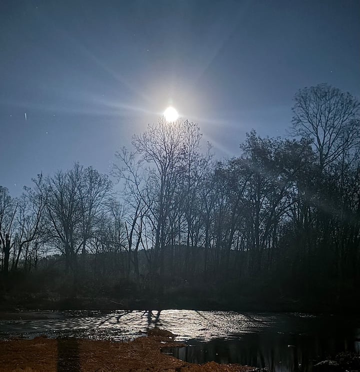 Vidiecky dom s vlastnými turistickými chodníkmi a výhľadom na potok