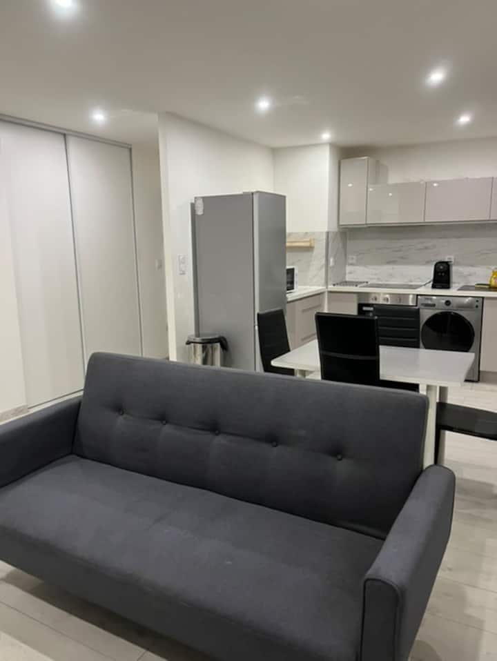 Vitajte v našom kompletne zrekonštruovanom, priestrannom, klimatizovanom a svetlom zaplavenom apartmáne, ktorý sa nachádza na 1. poschodí typickej budovy v Nîmes. Je navrhnutý pre pohodlie 6 hostí a kombinuje kvalitné materiály a strategickú polohu v blízkosti železničnej stanice SNCF a arén. Ideálne pre turistov aj obchodné pobyty. Užite si pokojné a elegantné prostredie len pár minút chôdze od historického centra a všetkých obchodov.