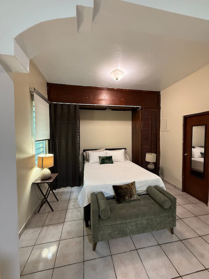 Vitajte v apartmáne Verde Quenepa (Zelený apartmán), sviežom a pohodlnom štúdiu s ideálnou polohou v srdci Casco Urbano v Hato Rey v San Juan.