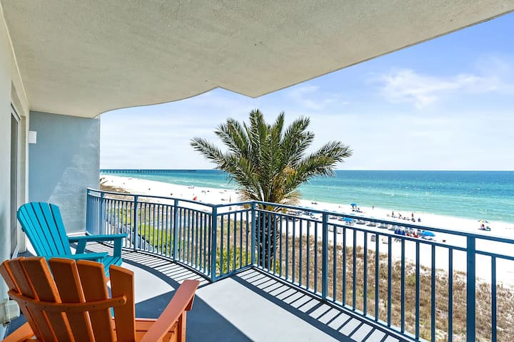 Uniknite do Sterling Breeze 307, vášho dokonalého útočiska na pláži. Tento priestranný rohový apartmán s 3 spálňami a 3 kúpeľňami ponúka úchvatný panoramatický výhľad na Mexický záliv takmer z každej izby. Okná od podlahy až po strop zapĺňajú priestor prirodzeným svetlom a rámujú biely piesok a smaragdové vody hneď za vaším súkromným balkónom. V plne vybavenej kuchyni s elegantnými doskami, modernými spotrebičmi a pohodlným raňajkovým barom môžete naplno využiť svoje kuchárske schopnosti. Hlavná suita poskytuje pokojný únik s mäkkou posteľou King, vlastným balkónom a luxusnou kúpeľňou so sprchovacím kútom. Prvá spálňa pre hostí je vybavená poschodovou posteľou a manželskou posteľou – ideálne pre rodiny. Druhá spálňa pre hostí je ako vlastný apartmán s manželskou posteľou veľkosti King, praktickou kuchynkou, vlastnou kúpeľňou a vlastným balkónom. Tento apartmán s pohodlným ubytovaním až pre 8 hostí je ideálny pre rodiny alebo skupiny, ktoré si chcú oddýchnuť a znovu sa spojiť. Začnite svoje ráno kávou na balkóne s výhľadom na záliv, nechajte sa unášať zvukom vĺn a nádherným výhľadom na pobrežie.