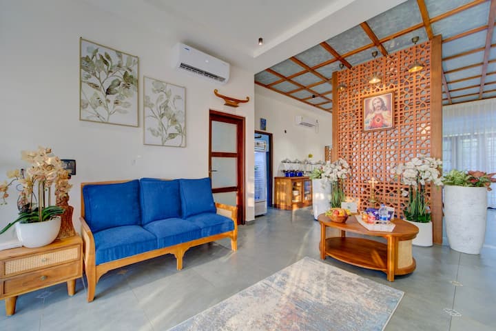 Toto odľahlé vidiecke útočisko, ukryté hlboko v otvorených poliach, ponúka pomalé dýchanie a tichú ľahkosť. Tri útulné spálne s 180-stupňovým výhľadom na zlatú poľnohospodársku pôdu a mäkké ranné svetlo. Privíta vás veranda s kachľovou strechou, lampami, drevenými lavičkami a kvetináčmi plnými zelene. Dve kuchyne – vnútorná a vonkajšia – lákajú na varenie pod holým nebom. Na dvore sú liatinové lavice, hojdačky, kútik s Budhom a príjemné ohnisko. Tu sa každá pauza zdá byť pomalšia a každý výhľad vás pozýva k hlbšiemu a tichšiemu dychu. Pokoj.