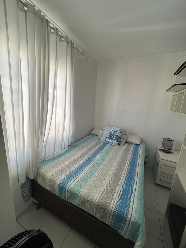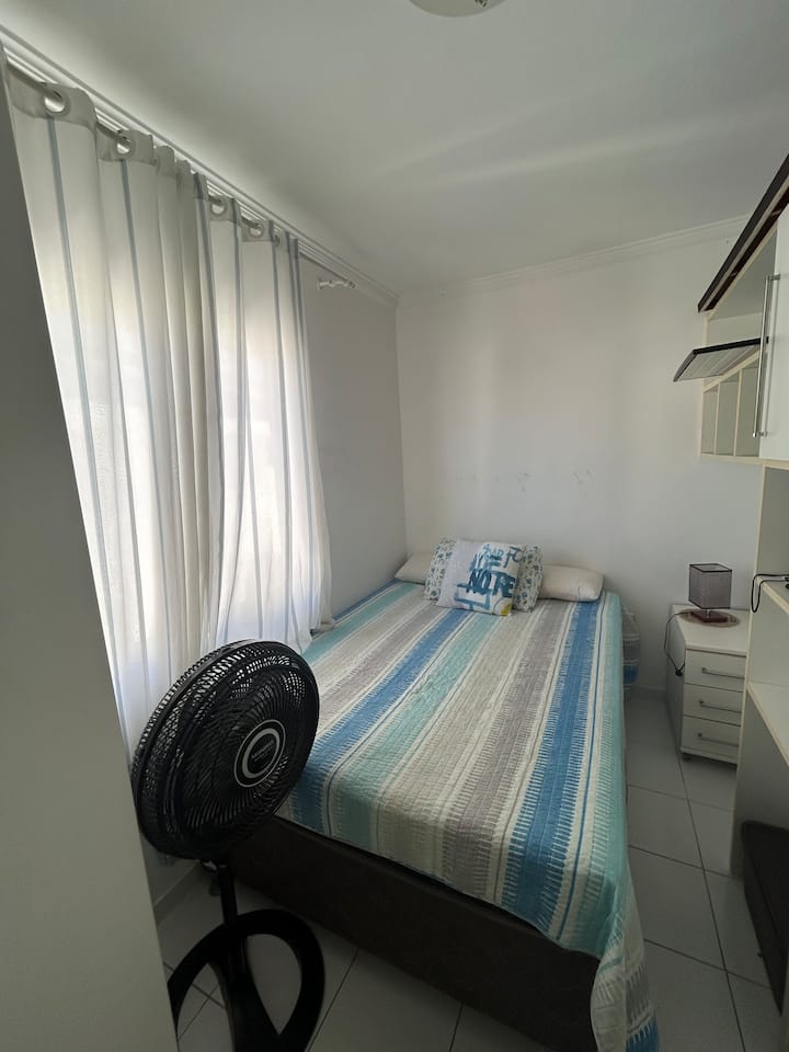 Alugo 1/4 com cama de casal e ventilador.