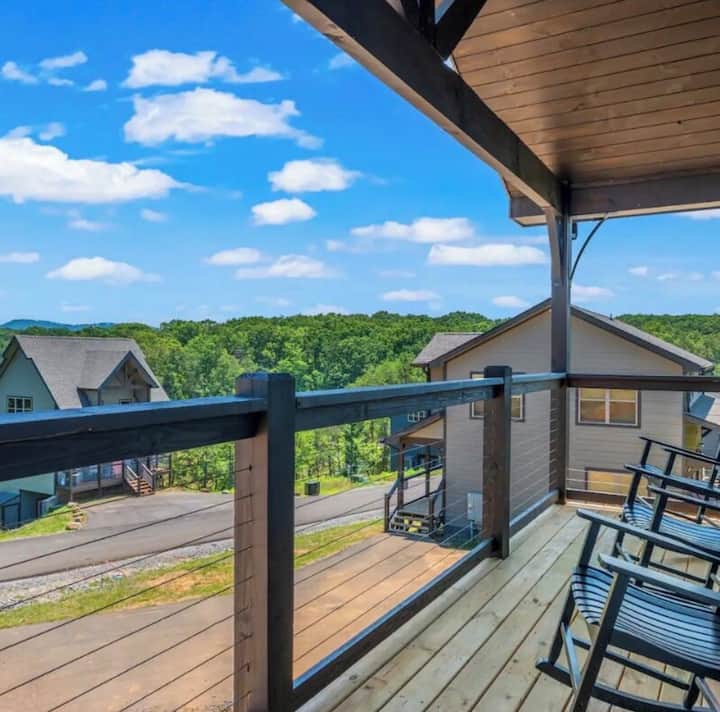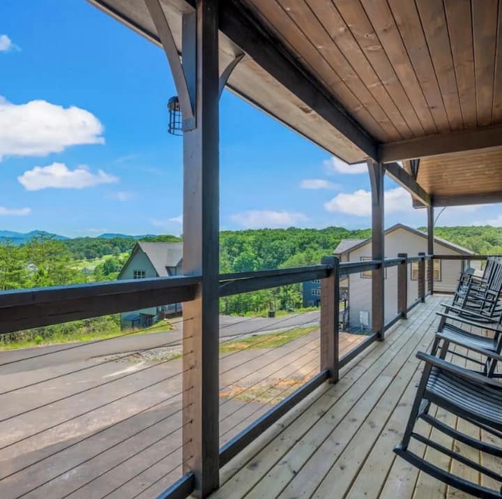 Vitajte v „Bear Monkey Lodge!“ Náš úplne nový luxusný zrub so 4 spálňami (pre 12 ľudí!) s úchvatým panoramatickým výhľadom, ktorý siaha až kam až oko dovidí, vám sľubuje nezabudnuteľný pobyt v Smoky Mountains. Či už hľadáte pokojné útočisko alebo dobrodružstvo, naša nádherná chata je dokonalou destináciou pre vašu rodinu a priateľov. ★Vonkajšia ★vírivka s krbom! ★ Arkádové hry ★ Vzdušný hokej ★ Plne vybavená kuchyňa pre gurmánov ★ Wi-Fi ★ Priestranné spálne ★ Malebné výhľady!!!