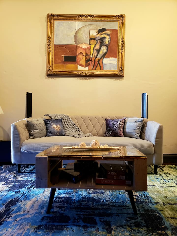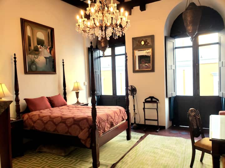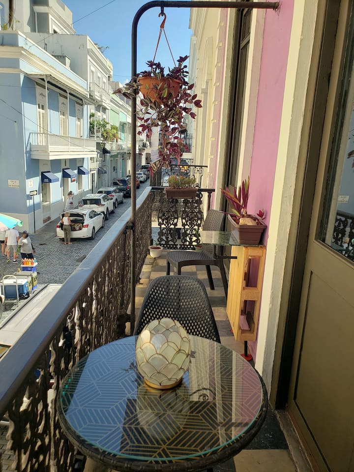 Príďte žiť ako kráľ v našom očarujúcom apartmáne na druhom poschodí, kde sa starý svet stretáva s novým. Má 1 veľmi priestrannú spálňu, 1 priestrannú kúpeľňu a 1 úžasný balkón s výhľadom na jednu z najznámejších a najrušnejších ulíc v OSJ. (Nedoporučuje sa pre ľudí s ľahkým spánkom cez víkendy a sviatky) Na ľavej strane môžete vidieť druhú najstaršiu kaplnku v Amerike a posledné miesto odpočinku slávneho prieskumníka Juana Ponce de Leona a na druhej strane La Capilla de Cristo. Vysoké stropy s odkrytými trámami všade okolo. Nábytok a lampy vyrobené na mieru. Táto historická budova sa nachádza v centre všetkého, takže nemusíte chodiť na dlhé vzdialenosti. Pohodlne sa vyspia 2 osoby alebo 4 osoby s 2 rozkladacími pohovkami. Po rezervácii vám poskytneme súbor PDF s odporúčanými miestami, ktoré môžete navštíviť, ako sú napríklad pláže v okolí, historické pamiatky, reštaurácie, možnosti parkovania a ďalšie miesta na ostrove, aby ste sa mohli lepšie pripraviť na svoju dovolenku.