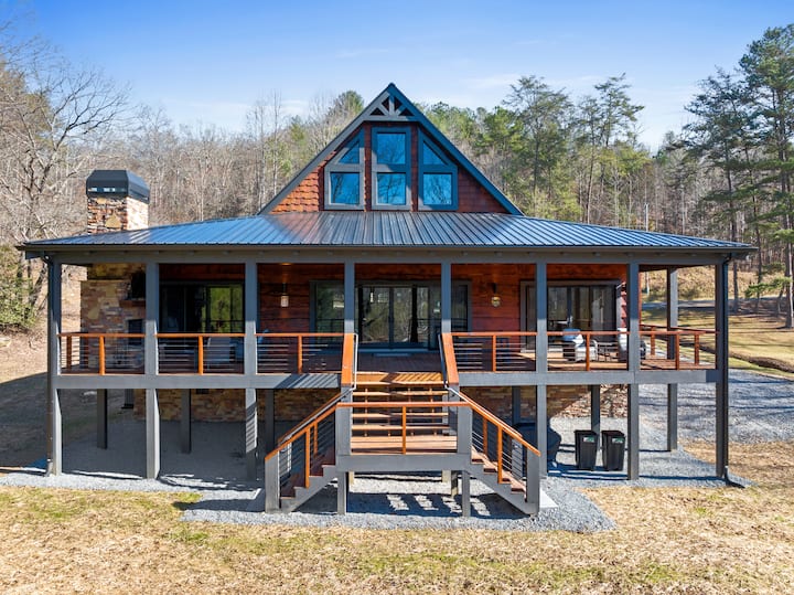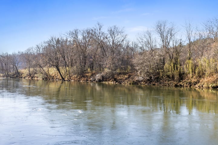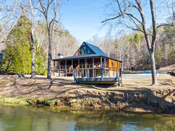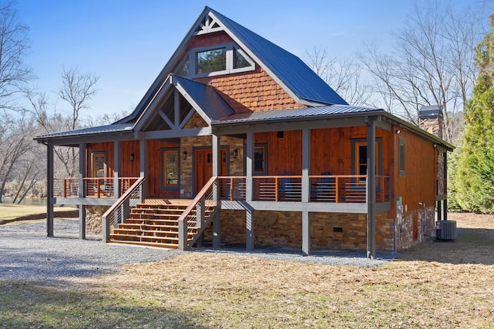 Nádherná chata pri rieke s verandou, kozubom a vírivkou