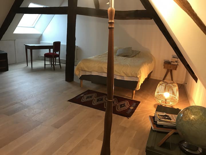 Ubytujte sa v renesančnom opevnenom dome v srdci historickej obce Cravant: vežička, točité schodisko, staré drevo, novorenesančný kozub, 3 spálne a čaro starého vinárskeho domu. Niekoľko metrov od obchodov a v blízkosti Canal du Nivernais, Irancy a kúpaliska Vermenton. Dom sa nachádza v srdci stredovekej dediny na ceste do Santiago de Compostela, kde príroda, čerešne a vinice sprístupňujú Chablis a Vézelay.
