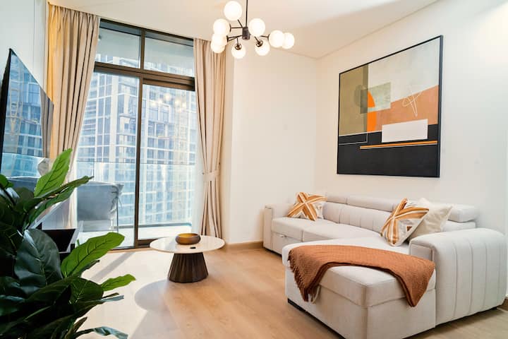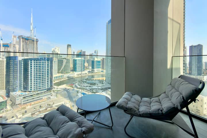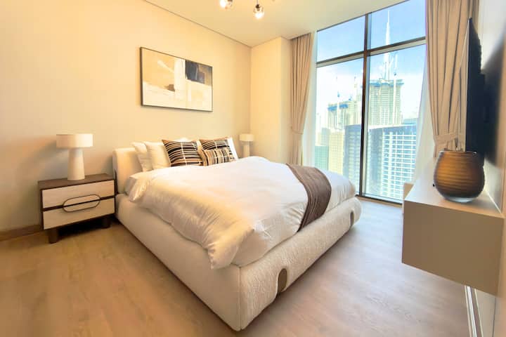 Výhľad na panorámu a Burj Khalífu | 2-izbový apartmán | Business Bay