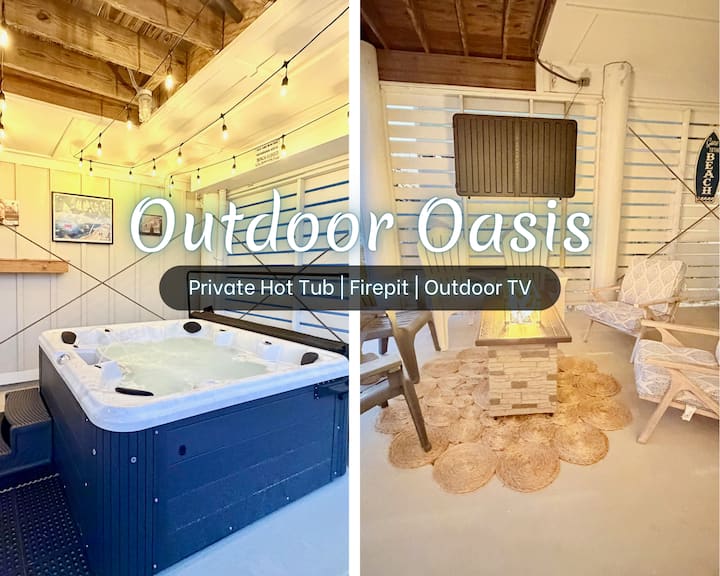 ☀ Súkromná „vonkajšia oáza“ s vírivkou, ohniskom, vonkajšou TV, dostatkom miesta na sedenie a grilom