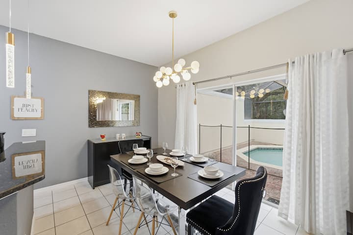 Ak hľadáte pohodlie, zábavu a pokoj v Orlande, náš dovolenkový dom je ideálnym miestom pre vás a vašu rodinu. Tento dom so 4 spálňami a priestorom až pre 11 hostí ponúka ideálne prostredie pre skupinu alebo rodinu, ktorá hľadá úžasný zážitok. Nachádza sa v očarujúcom rezorte Bella Vida, takže budete blízko všetkých atrakcií mesta a zároveň si vychutnáte pokoj a súkromie exkluzívneho útočiska. Pripravte sa na nezabudnuteľný pobyt v dokonalom prostredí, ktoré kombinuje pohodlie, zábavu a množstvo kúzla!