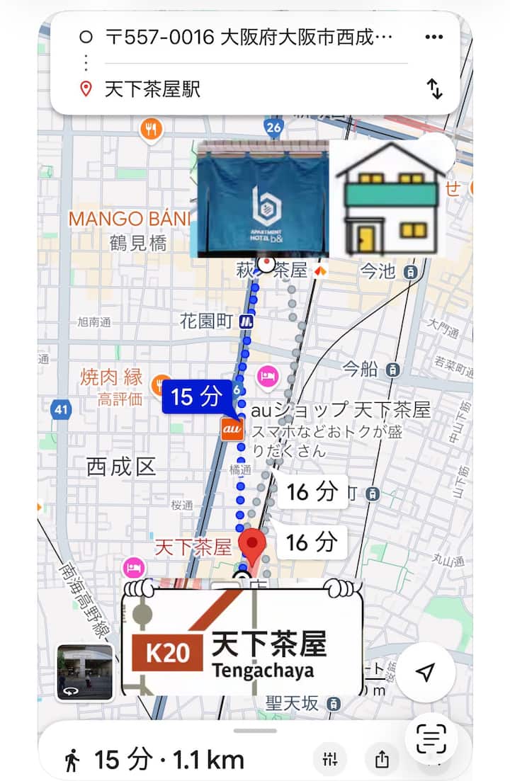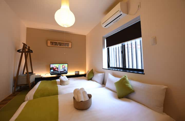 b&Záhrada sever/2 minúty pešo od metra Hanazonocho/Najviac 9 osôb/80 m²/Dvojitá kúpeľňa/Minami-no-miya/Kúpele/Konami-bashi/Namba/električka priamo