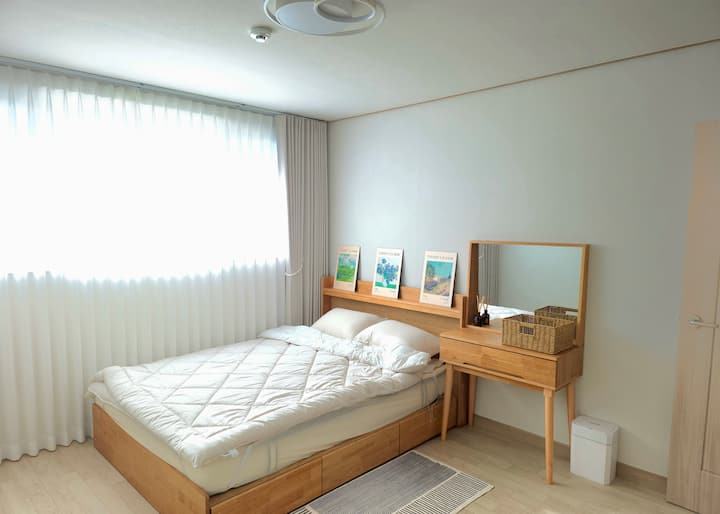 Je to samostatný dom s 1. a 2. poschodím vhodný pre skupiny alebo veľké rodiny. Nachádza sa pred Sinbuk-eup Jangter.