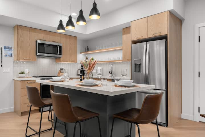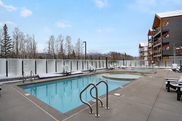 Ubytujte sa v jednej z najnovších budov v Canmore, ktorá bude dokončená v roku 2025. Apartmán, ktorý sa prenajíma ako jedna jednotka, je štúdio spojené s 2BR. Ponúka dve plne vybavené kuchyne, dva balkóny a dve plne vybavené práčovne, obe s výhľadom na hory. Užite si vonkajší bazén a vírivku a potom si oddýchnite v svetlých, moderných priestoroch – ideálnych pre rodiny, páry alebo skupiny. Užite si súkromie, ktoré ponúkajú dve apartmány, alebo otvorte susedné dvere a zdieľajte otvorený priestor.