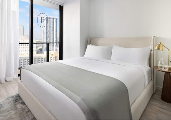 Objavte svetlý a vzdušný apartmán navrhnutý pre šesť ľudí, ktorý ponúka dve pokojné spálne, luxusné vybavenie a rozsiahly výhľad na centrum Miami a Biscayne Bay.