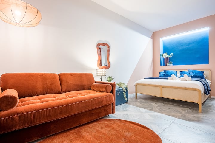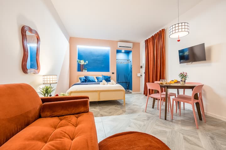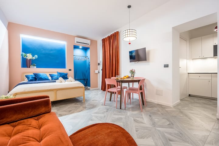 Zažite Turín štýlovo v tomto modernom dizajnovom štúdiu, ktoré sa nachádza len kúsok od Mole Antonelliana, Turínskej univerzity – Palazzo Nuovo a Piazza Vittorio Veneto. Je ideálny pre páry, mestské pobyty a krátke výlety a ponúka klimatizáciu, inteligentný televízor a rýchle Wi-Fi pripojenie. Ideálna poloha na prechádzky medzi centrom, múzeami a klubmi: pohodlie, sloboda a autentickosť v srdci Turína.