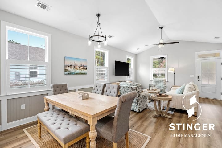 Oddýchnite si v tomto krásne zariadenom dome s 3 spálňami a 2 kúpeľňami v srdci očarujúceho Port Royal. Toto ubytovanie sa nachádza v pokojnej štvrti a ponúka svetlý otvorený obytný priestor a moderné vybavenie. Je vzdialené len niekoľko minút od pláže Sands Beach, promenády Port Royal Boardwalk, miestnych reštaurácií, ostrova Parris Island a historického mesta Beaufort. Ideálne pre rodiny, páry alebo priateľov, ktorí hľadajú pohodový pobyt v Lowcountry.