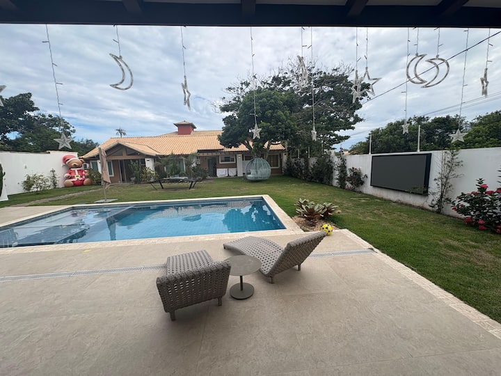 * Žiadame vás, aby ste sa odhlásili u hostiteľov. Máme gazdinku, ktorá sa stará o dom a pripravuje jednoduché jedlá za 150,00 BRL na deň. Jej služby sú povinné, dom bez nej neprenajímame.