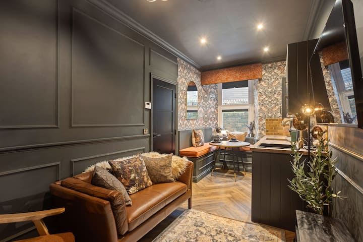 Ubytujte sa v tomto butikovom štúdiu v Cambusbarrone, len 1,8 míle od centra mesta Stirling. Tento štýlový otvorený priestor ponúka manželskú posteľ s čistou bielizňou, modernú kuchyňu s kávovarom Nespresso a umývačkou riadu, jedálenský kút pre 2 osoby, Smart TV a rýchle Wi-Fi. Užite si bezplatné parkovanie na ulici, pokojné prechádzky v lese vrátane stratených záhrad hradu Polmaise, ako aj ľahký prístup autobusom alebo pešo do Stirlingu, King's Parku a k historickým pamiatkam. Ideálne pre páry alebo sólo cestujúcich, ktorí hľadajú komfort a pohodlie.