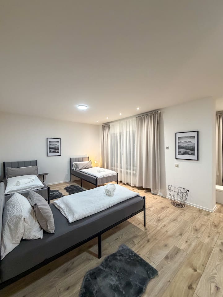 Moderný apartmán pre montérov s parkoviskom a Wi-Fi