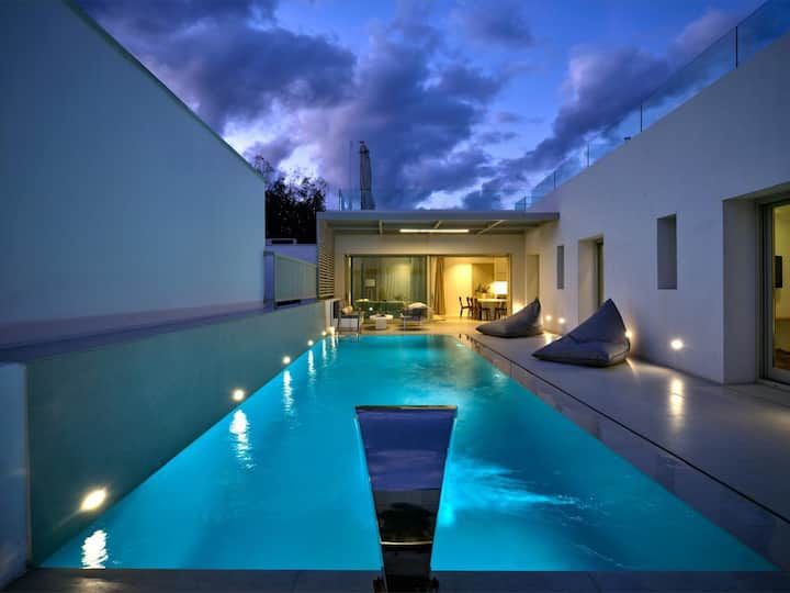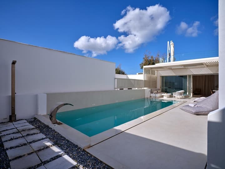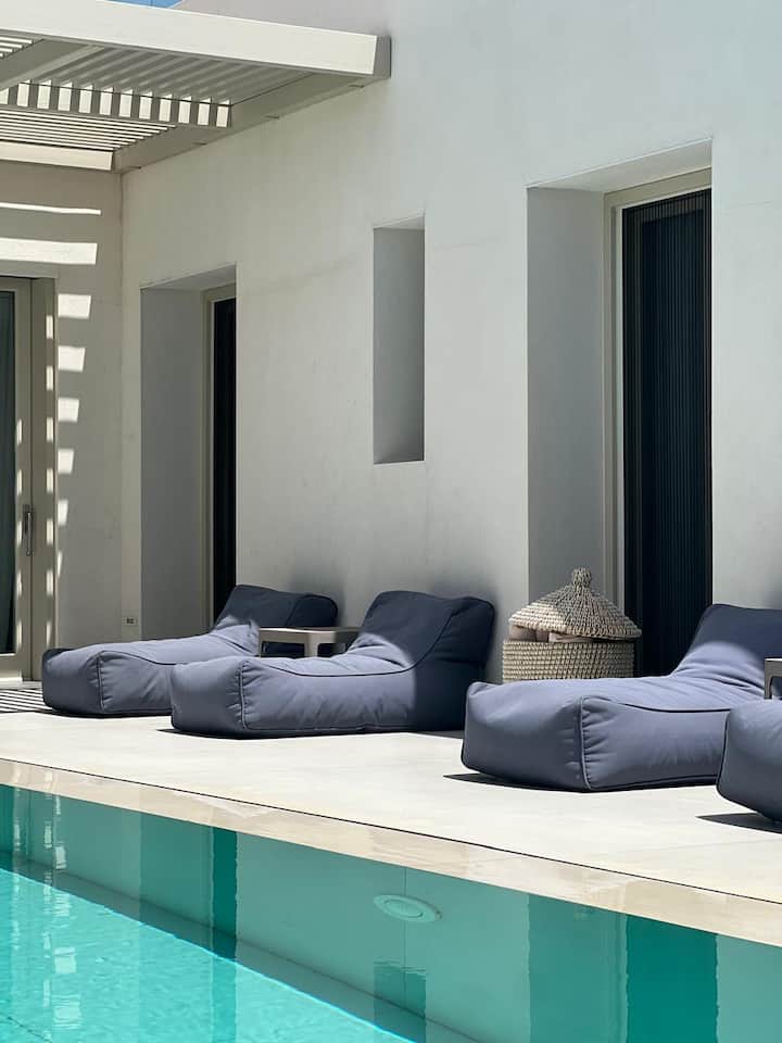 SOMNIO ESTATE predstavuje vilu Yagha, sofistikovanú luxusnú vilu s 5 spálňami na Parose, ktorá dokonale spája moderné pohodlie s autentickým kykladským šarmom. Vila Yagha sa nachádza len 13 minút chôdze od rušného centra Naoussy a len pár krokov od pláže Piperi. Ponúka okamžitý prístup k miestnym kaviarňam, obchodom a nočnému životu a zároveň zachováva úplné súkromie.