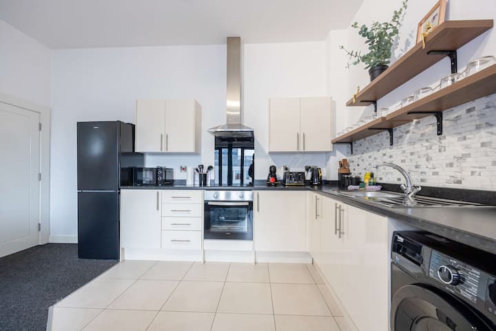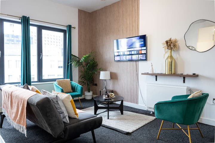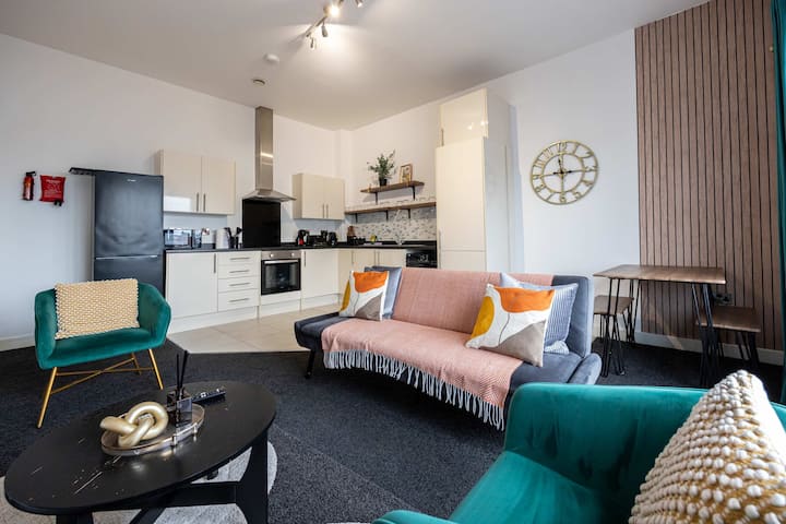 Celkovo je apartmán dobre prepojený, pohodlný a praktický. Spája vynikajúce dopravné spojenie s blízkosťou kľúčových kultúrnych, športových a obchodných destinácií v Manchestri, vďaka čomu je ideálnou voľbou pre širokú škálu hostí.
