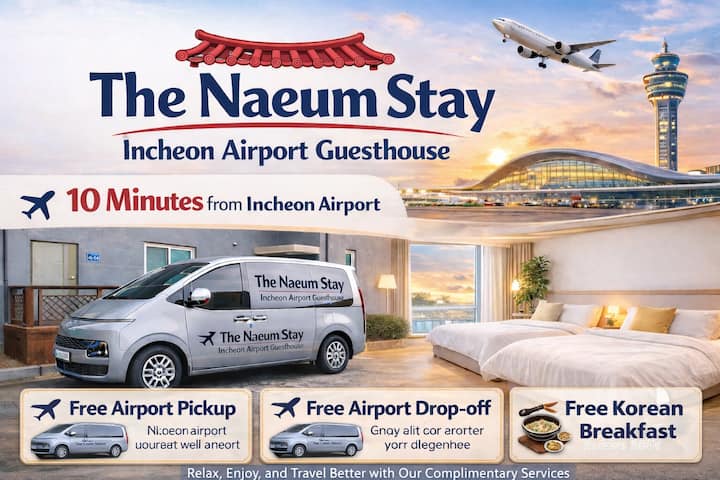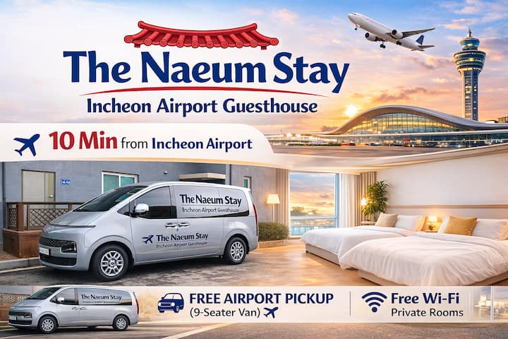 The naeum Stay4/10 minút od letiska (bezplatné vyzdvihnutie + odvoz)/zdieľaný dom/raňajky v kórejskom štýle/1 izba pre 2 osoby, 2 poschodia
