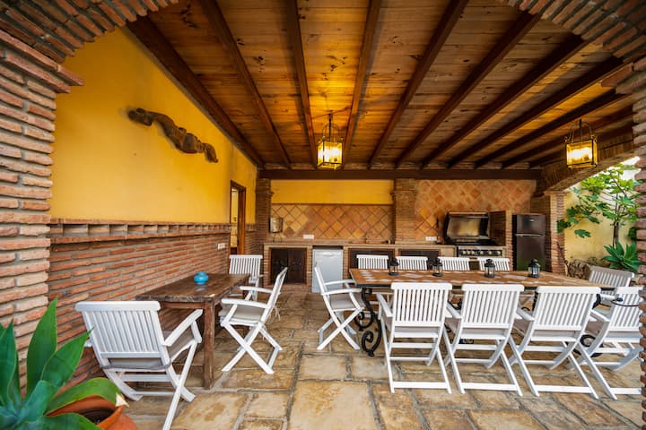 Kuchyňa je postavená a zariadená v rustikálnom španielskom štýle a ponúka moderné spotrebiče, ktoré sú dobre vybavené pre príjemný zážitok z varenia. Veľkým plusom je, že v kuchyni je nainštalovaný systém čistenia vody, čo znamená, že voda z vodovodu v kuchyni je 100% bezpečná na pitie, čo vám ušetrí peniaze a neustále sa dostanete do supermarketu. Suterén má 2 spálne a veľký zábavný priestor s pingpongovým stolom, futbalovým stolom, televízorom a ihriskou.