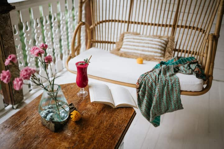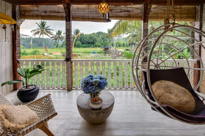 Naša ekologická nehnuteľnosť pozostáva zo 7 starožitných a recyklovaných drevených ručne vyrobených joglov v pokojnej ryžovej oblasti 20 minút chôdze od centra Ubudu.