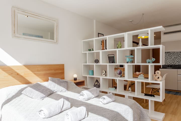 Spravujem päť apartmánov: štyri moderné štúdiá v srdci microcentra a elegantný apartmán vo francúzskom štýle v Recolete, môj klenot.