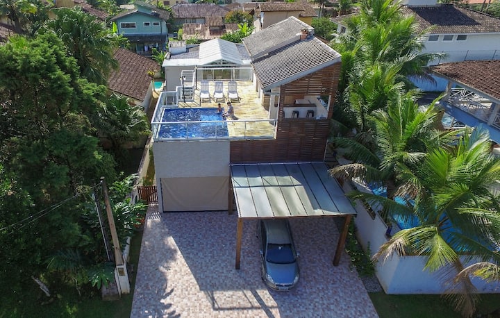 Dokonale integrovaný do svojho prostredia, tento Letný dom bol špeciálne navrhnutý a navrhnutý renomovaným architektom z Ria Pedro Nogueira, aby slúžil ako ideálne miesto na pobyt, s pohodlím a bezpečnosťou, rodiny hostiteľa alebo iných možných rodín, párov a ďalších ľudí, ktorí majú záujem o tento typ ubytovania. To znamená, že pre použitie privilegovaných hostí, s deťmi alebo bez detí, s domácimi zvieratami alebo bez nich, ktorí hľadajú v Ubatuba pohodlné a bezpečné ubytovanie, ktoré im poskytuje nezabudnuteľné dni radosti, voľný čas, pokoj, pokoj, ticho a život s najlepšími plážami na severnom pobreží.