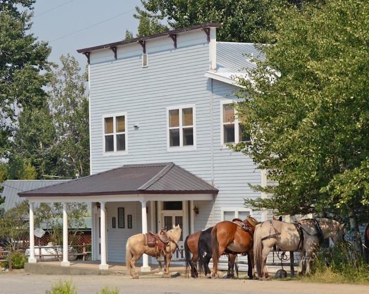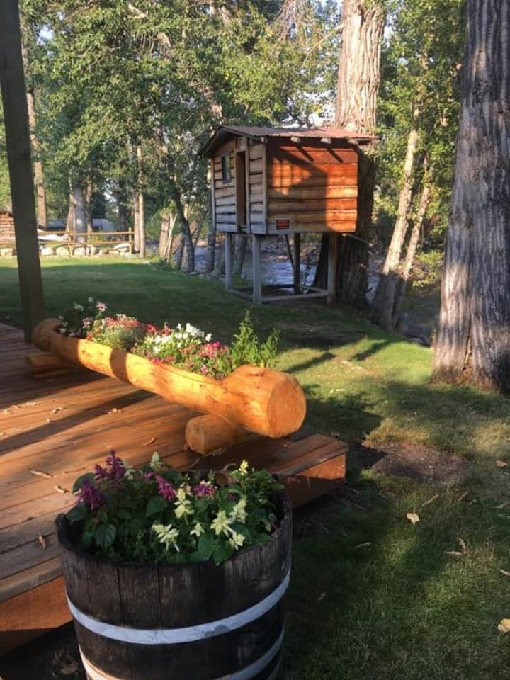 K dispozícii sú 2 spálne s 1 manželskou posteľou, 2 kúpeľne s toaletou, práčka/sušička a môžu sa veľmi pohodlne ubytovať 4 hostia. Má vlastnú súkromnú terasu pri rieke s grilom, vonkajšou jedálenskou zónou a niekoľkými stoličkami Adirondack. Spoločný priestor (keď sú na poschodí aj iní hostia) so stromovým domom, ohniskom a trávnikom pri rieke dopĺňa toto dokonalé miesto na vychutnávanie Montany.