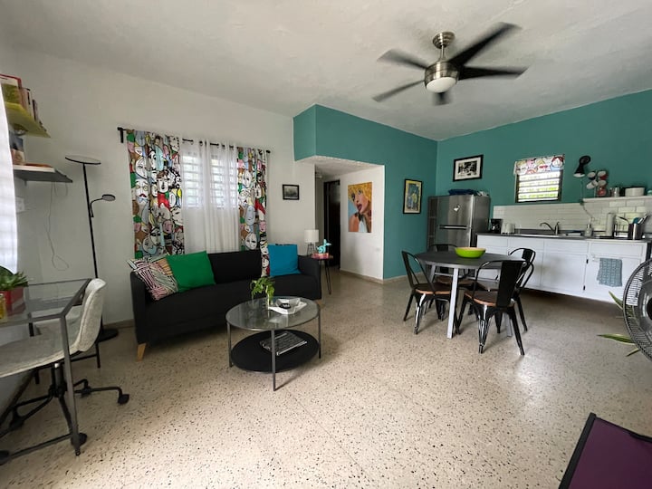 Vitajte v našom tropickom raji, 5 minút chôdze od pláže, v bezpečnej oplotenej komunite. Útulný apartmán s 1 spálňou, ukrytý v našej bočnej záhrade s tienistou prednou verandou, kde si môžete vychutnať prírodu. Vyjdite von a objavte spoločnú záhradu s miestami na sedenie a bujnými ovocnými stromami vrátane nádherného tamarindovníka, ktorý ponúka svoje lahodné ovocie. Miesto využíva solárnu energiu, aby sme boli ohľaduplní voči našej stope. Toto je náš domov a dúfame, že sa v ňom hostia budú cítiť dobre, budú ho milovať a rešpektovať rovnako ako my.