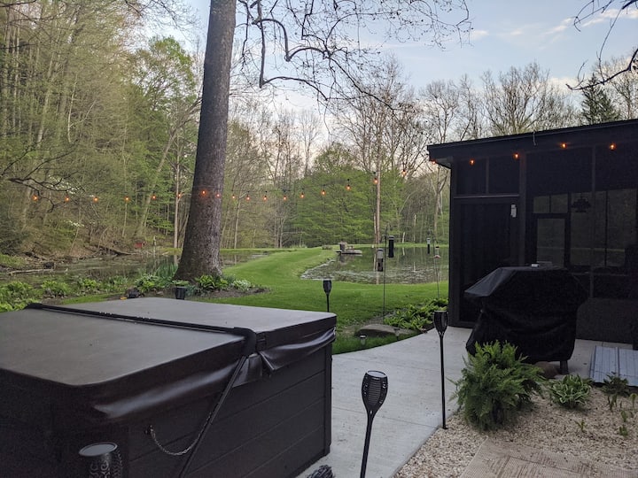 Zrub s rybníkom a krbom * Vírivka * Manželská posteľ