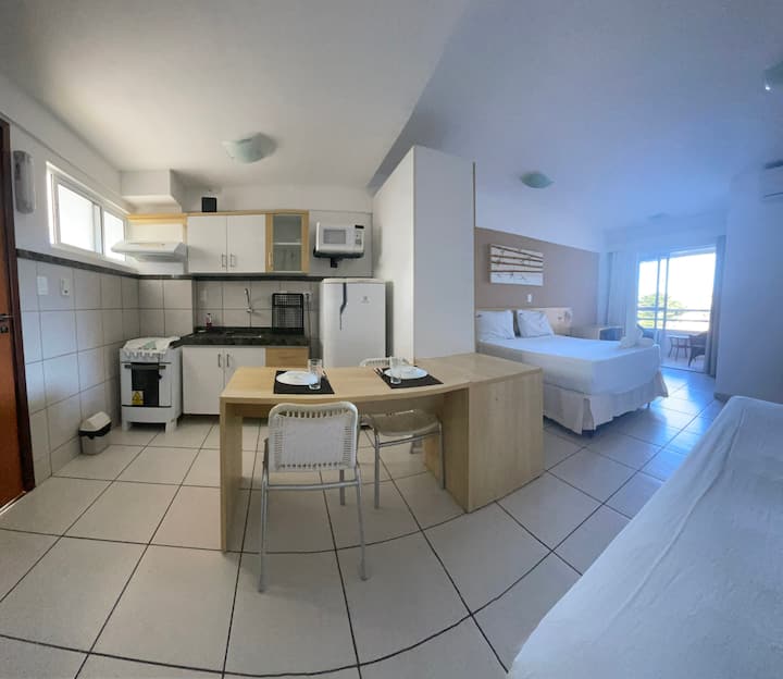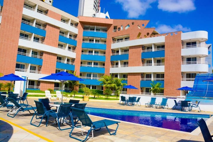 Byt 100 metrov od pláže Ponta Negra, ohromujúci výhľad na more, kuchynský kút, rozdelený vzduch, kuchynský kút, káblová televízia, Wi-Fi internet, kryté parkovisko, vynikajúca poloha, v blízkosti reštaurácií, barov, obchod, denné upratovanie a upratovanie, skvelé pre voľný čas.
