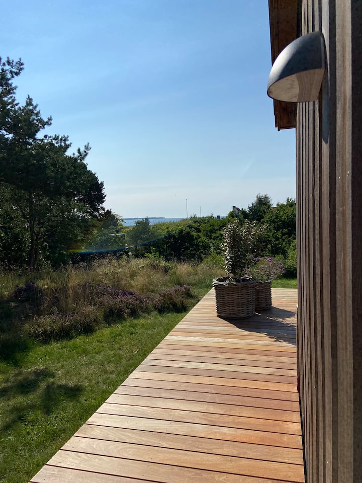Drevený dom v Mols Bjerge s výhľadom na more – 200 m od pláže